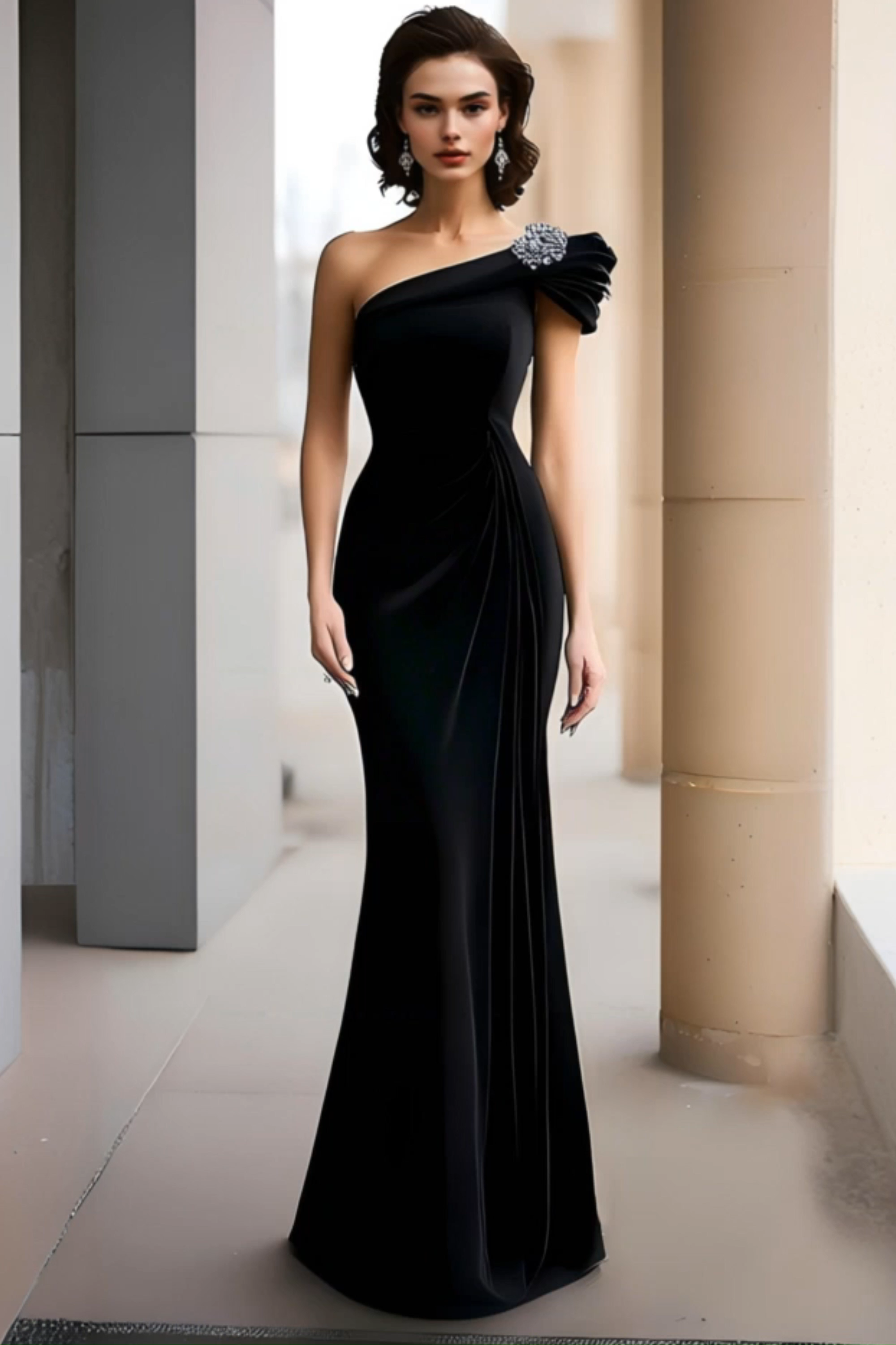 Formal Evening Velvet Dress Black One-Shoulder Maxi Dress